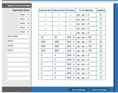 1 MAKE SURE 3 PORTS (MEDIA, WEB, SETUP PORT) ARE MAPPED AND OPEN IN THE ROUTER. AND KEEP THE IP ADDRESS OF 3 PORTS THE SAME. SEE BELOW PICTURE 2 (192.168.1.150), THE SAME AS IP ADDRESS SET IN THE DVR (PICTURE 1).
